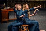 Творческая встреча с художественным руководителем Московского театра "Эрмитаж" Михаилом Левитиным в рамках городской "Ночи театров", посвященная выходу книги Михаила Левитина "Братство одиноких (сто лет режиссуры в вольном изложении)", в Московском театре "Эрмитаж". Актрисы Ким Дарья Кошева (слева) и Мария Глянц во время выступления.