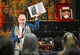 Творческая встреча с художественным руководителем Московского театра "Эрмитаж" Михаилом Левитиным в рамках городской "Ночи театров", посвященная выходу книги Михаила Левитина "Братство одиноких (сто лет режиссуры в вольном изложении)", в Московском театре "Эрмитаж". Актер Павел Мамонов во время выступления.