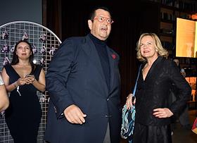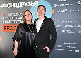 Церемония награждения VIII ежегодной премии интеллектуального волонтерства ProCharity — 2025 от благотворительного фонда "Друзья" в инновационном пространстве "Кибердом". Продюсер Софико Шеварднадзе (слева) и предприниматель и сооснователь благотворительного фонда "Друзья" Ян Яновский на церемонии.