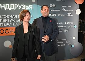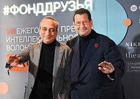 Церемония награждения VIII ежегодной премии интеллектуального волонтерства ProCharity — 2025 от благотворительного фонда "Друзья" в инновационном пространстве "Кибердом". Соучредитель фонда "Друзья", cоветник ректора, почетный член Ассоциации содействия развитию Московской школы управления "Сколково" Гор Нахапетян и предприниматель и сооснователь благотворительного фонда "Друзья" Ян Яновский на церемонии.