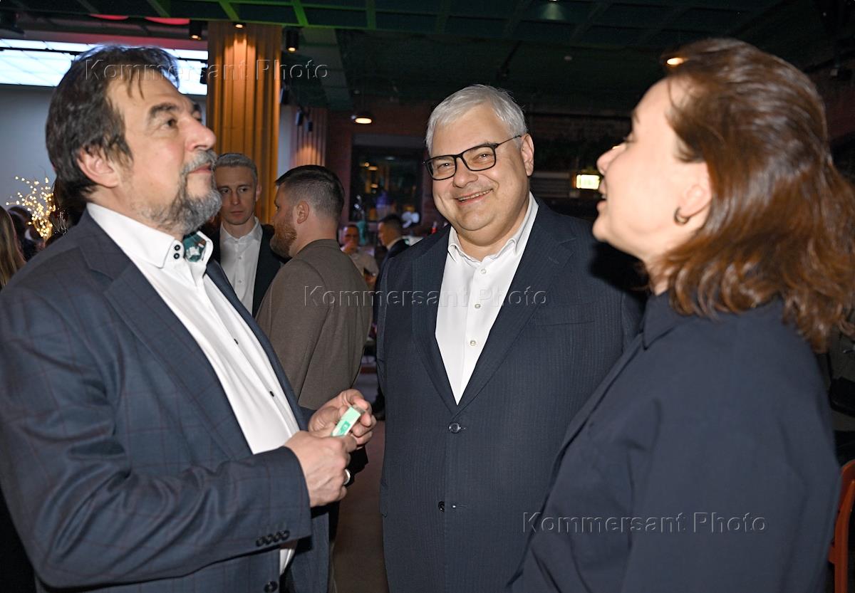 Церемония награждения VIII ежегодной премии интеллектуального волонтерства ProCharity — 2025 от благотворительного фонда "Друзья" в инновационном пространстве "Кибердом". Предприниматель и сооснователь благотворительного фонда "Друзья" Ян Яновский (слева) и соучредитель фонда "Друзья", cоветник ректора, почетный член Ассоциации содействия развитию Московской школы управления "Сколково" Гор Нахапетян (в центре) на церемонии.