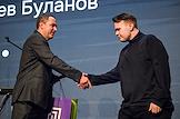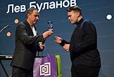 Церемония награждения VIII ежегодной премии интеллектуального волонтерства ProCharity — 2025 от благотворительного фонда "Друзья" в инновационном пространстве "Кибердом". Генеральный директор АО "Кибердом" Сергей Калмыков (слева) и победитель премии Лев Буланов (справа) на церемонии.