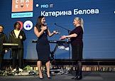 Церемония награждения VIII ежегодной премии интеллектуального волонтерства ProCharity — 2025 от благотворительного фонда "Друзья" в инновационном пространстве "Кибердом". Руководитель группы PR-проектов в Яндекс (ESG и цифровая безопасность) Александра Барсенкова (в центре) на церемонии.