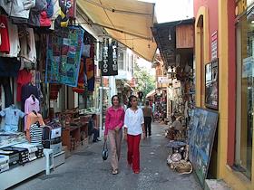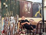 Виды Анталии. Уличная торговля. Спящий продавец сувенирной лавки.