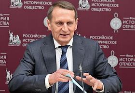 Заседание "круглого стола", посвященного истории отечественного экспорта в Доме Российского исторического общества (РИО). Председатель Российского исторического общества, директор Службы внешней разведки России Сергей Нарышкин во время заседания.