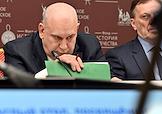 Заседание "круглого стола", посвященного истории отечественного экспорта в Доме Российского исторического общества (РИО). Научный руководитель Института российской истории РАН Юрий Петров во время заседания.
