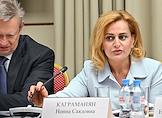 Заседание "круглого стола", посвященного истории отечественного экспорта в Доме Российского исторического общества (РИО). Слева направо: ответственный секретарь РИО, советник министра просвещения России Андрей Петров, председатель Российского исторического общества, директор Службы внешней разведки России Сергей Нарышкин, вице-президент ВЭО России, директор ВЭО России, вице-президент, исполнительный директор Международного Союза экономистов, доктор экономики и менеджмента Маргарита Ратникова и генеральный директор ООО "НПО ПКРВ" Дмитрий Алабужев во время заседания.
