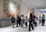 Выставка "Уроки географии" в Национальном центре "Россия". Посетители на выставке.