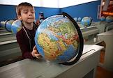 Выставка "Уроки географии" в Национальном центре "Россия". Школьник на выставке.