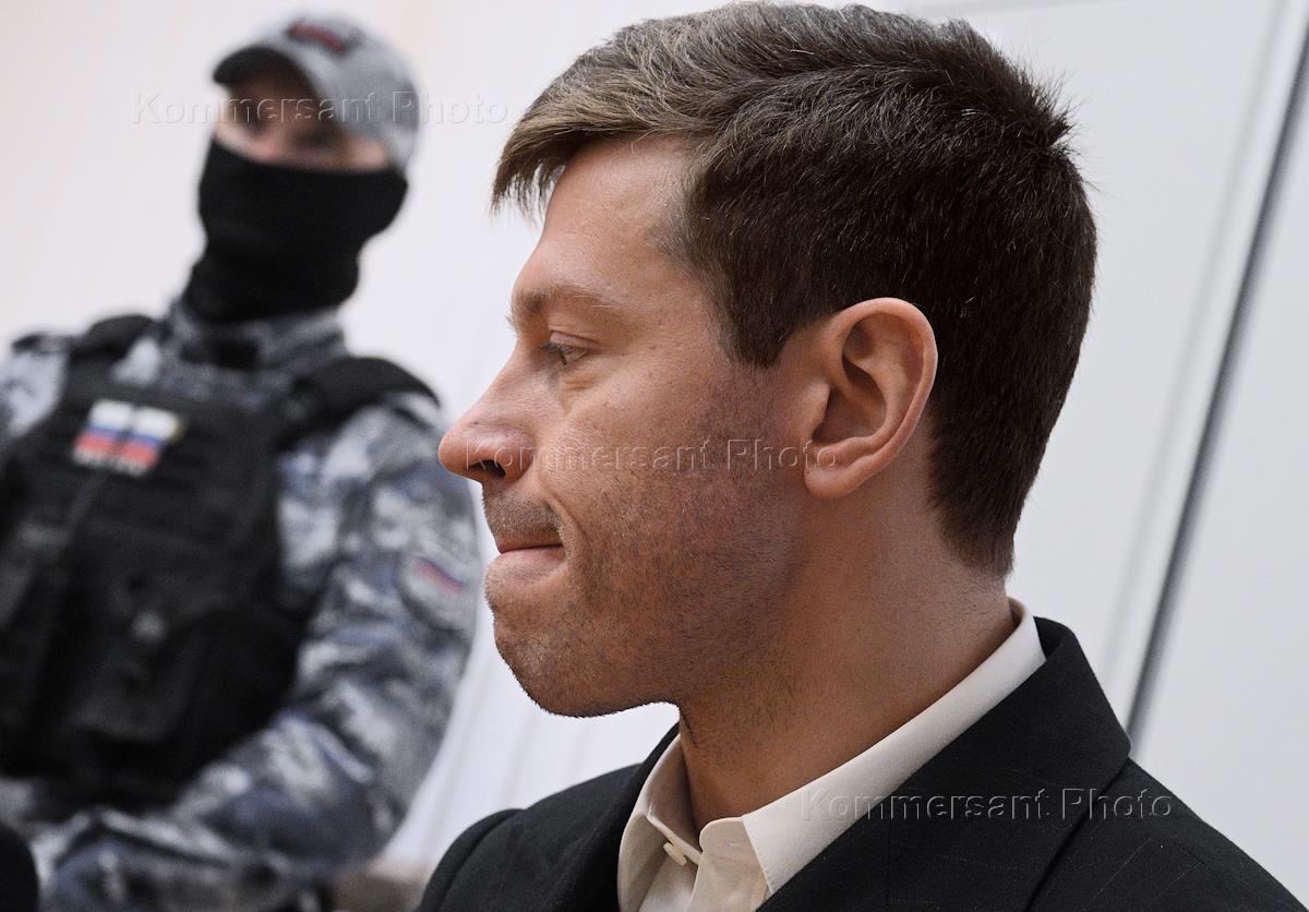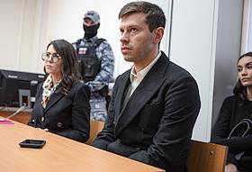 Рассмотрение по существу дела в отношении футболиста Федора Смолова, обвиняемого в причинении вреда здоровью средней тяжести после драки в кафе "Кофемания" на Большой Никитской улице, в 418-м судебном участке Москвы. Футболист Федор Смолов во время заседания суда.