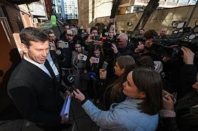 Рассмотрение по существу дела в отношении футболиста Федора Смолова, обвиняемого в причинении вреда здоровью средней тяжести после драки в кафе "Кофемания" на Большой Никитской улице, в 418-м судебном участке Москвы. Футболист Федор Смолов после окончания заседания суда.