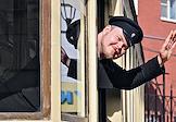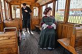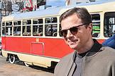 Парад исторических трамваев по маршруту от Курского вокзала до улицы Сергия Радонежского. Руководитель департамента транспорта и развития дорожно-транспортной инфраструктуры города Москвы Максим Ликсутов на параде.