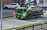 Парад исторических трамваев по маршруту от Курского вокзала до улицы Сергия Радонежского. Жанровая фотография. Автомобиль эвакуатор службы "Московский паркинг" во время транспортировки автомобиля каршеринга за нарушение правил парковки.