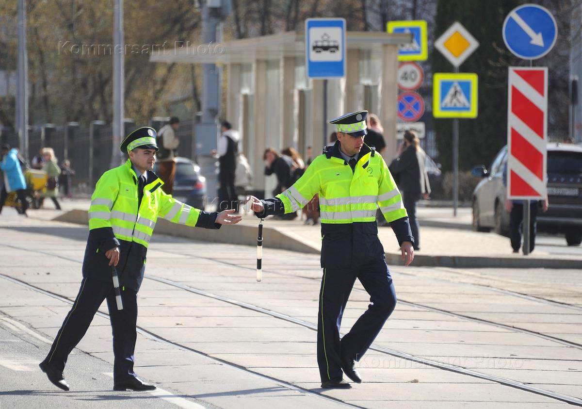 Жанровая фотография. Сотрудники Центра организации дорожного движения во время регулирования ситуации на дороге.