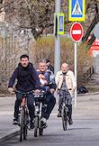 Жанровая фотография. Мужчины едут на велосипедах по дороге.