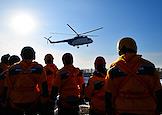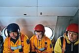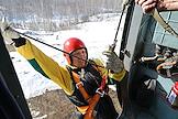 Тренировка десантников-пожарных на вертолетной базе "Хелипорт-Новосибирск" в селе Барлак Новосибирской области. Десантирование с вертолета МИ-8 в рамках подготовки парашютно-десантной пожарной службы Новосибирской базы авиационной охраны лесов к пожароопасному сезону. Пилоты в кабине вертолета.