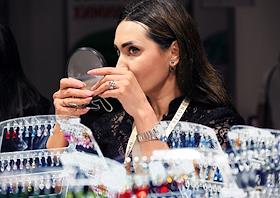Межсезонная парфюмерно-косметическая выставка для российских брендов и производителей R-BEAUTY от interCHARM в Международном выставочном комплексе "Крокус Экспо". Жанровая фотография. Стенд производителей бижутерии.