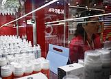 Межсезонная парфюмерно-косметическая выставка для российских брендов и производителей R-BEAUTY от interCHARM в Международном выставочном комплексе "Крокус Экспо". Жанровая фотография. Стенд уходовой косметики.