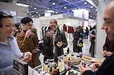 Межсезонная парфюмерно-косметическая выставка для российских брендов и производителей R-BEAUTY от interCHARM в Международном выставочном комплексе "Крокус Экспо". Жанровая фотография. Посетители на выставке.