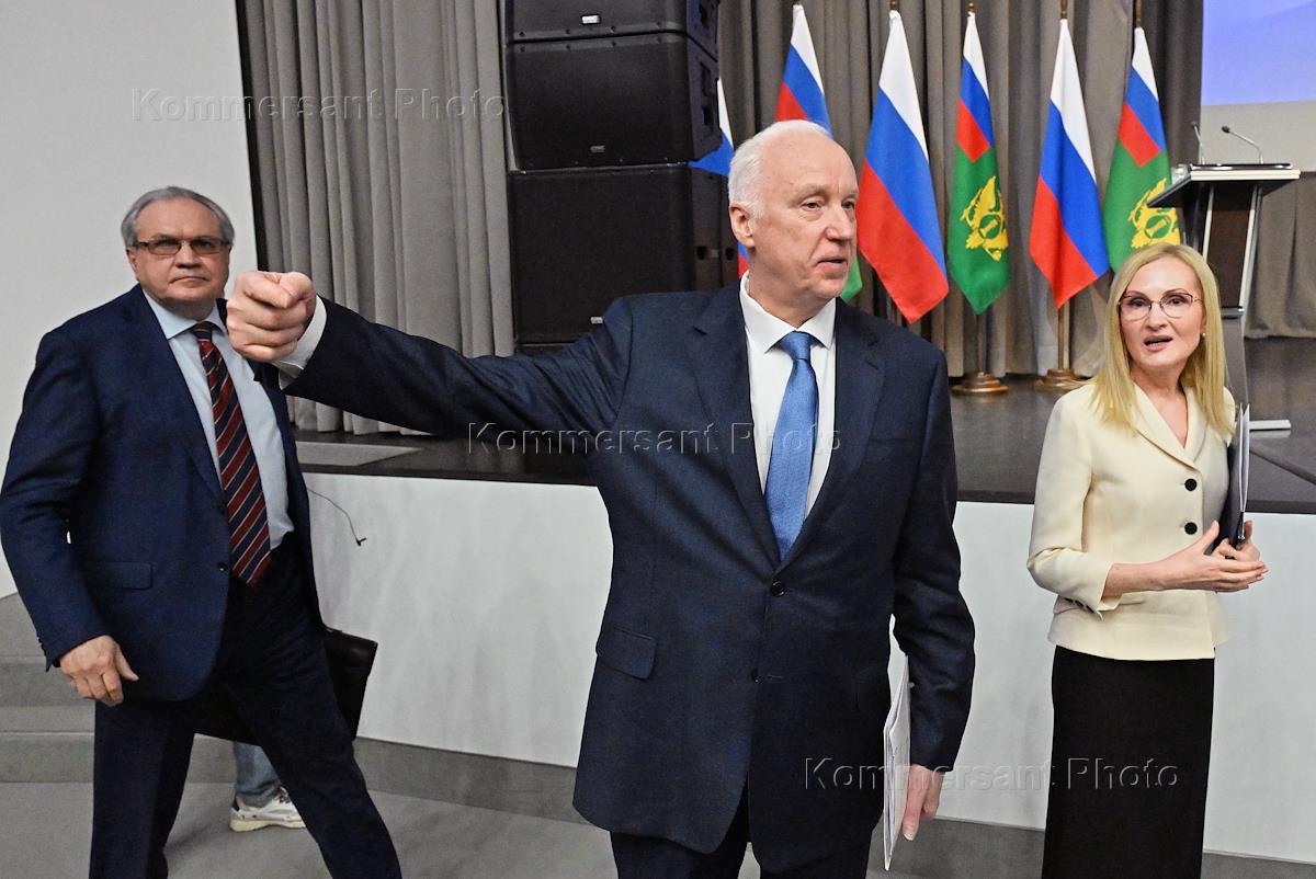 Заседание коллегии Министерства юстиции (Минюст)России "Об итогах деятельности Министерства юстиции Российской Федерации за 2025 год и задачах на 2026 год" в Минюсте России. Слева направо: министр юстиции России Константин Чуйченко, председатель Следственного комитета России Александр Бастрыкин и первый заместитель генерального прокурора России Анатолий Разинкин во время заседания.