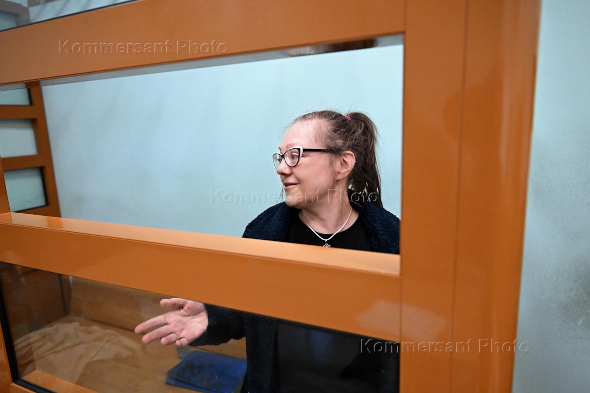 Заседание суда по делу Александры Житенко, обвиняемой в деятельности организации "Артподготовка", которая в России признана террористической и запрещена, во Втором западном окружном военном суде. Обвиняемая Александра Житенко во время заседания.