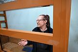 Заседание суда по делу Александры Житенко, обвиняемой в деятельности организации "Артподготовка", которая в России признана террористической и запрещена, во Втором западном окружном военном суде. Жанровая фотография.