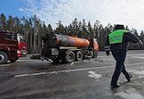 Межведомственные учения по ликвидации последствий массового ДТП на автодороге Р-351. Сотрудник ДПС ГИБДД на трассе.