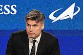 Российский космический форум, приуроченный к 65-й годовщине полета космонавта Юрия Гагарина, в Национальном центре "Россия". Председатель ПАО "Промсвязьбанк" Петр Фрадков во время сессии "Частный космос: инвестиции и модели роста для новой экосистемы".