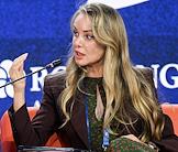 Российский космический форум, приуроченный к 65-й годовщине полета космонавта Юрия Гагарина, в Национальном центре "Россия". Первый заместитель генерального директора негосударственного института развития "Иннопрактика" Наталья Попова во время сессии "Частный космос: инвестиции и модели роста для новой экосистемы".