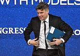 Российский космический форум, приуроченный к 65-й годовщине полета космонавта Юрия Гагарина, в Национальном центре "Россия". Генеральный директор АО "ГЛОНАСС" Алексей Райкевич во время сессии "Частный космос: инвестиции и модели роста для новой экосистемы".