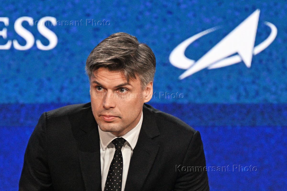 Российский космический форум, приуроченный к 65-й годовщине полета космонавта Юрия Гагарина, в Национальном центре "Россия". Генеральный директор АО "ГЛОНАСС" Алексей Райкевич во время сессии "Частный космос: инвестиции и модели роста для новой экосистемы".