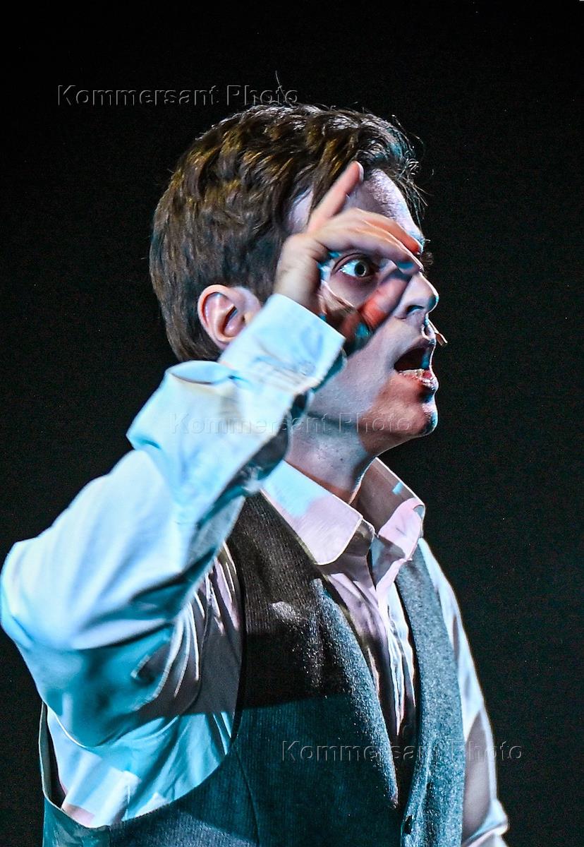 Актер Кирилл Ковбас во время пресс-показа спектакля "Морфий" в Московском драматическом театре имени Н. В. Гоголя.