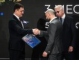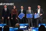 Торжественная церемония награждения победителей Национальной премии "Наш вклад" в Конгресс-парке гостиницы "Рэдиссон Ройал Москва". Заместитель председателя правительства России Александр Новак (третий слева) на церемонии.
