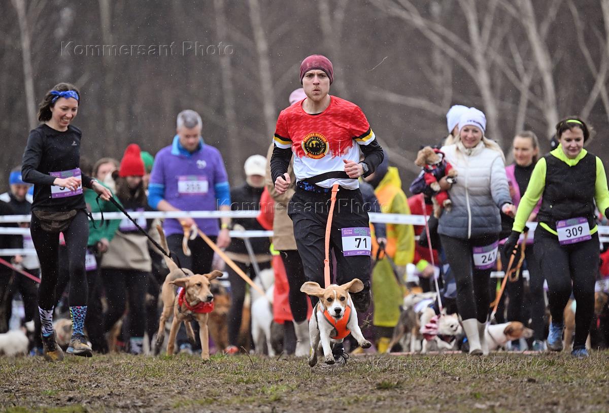 Забег с собаками – кросс "Быстрый пес" в природно-историческом парке "Битцевский лес". Участники забега.