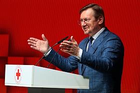 XVIII съезд Российского Красного Креста на ВДНХ. Министр здравоохранения России Михаил Мурашко на съезде.