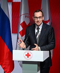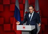 XVIII съезд Российского Красного Креста (РКК) на ВДНХ. Глава представительства Международной федерации обществ Красного Креста и Красного Полумесяца в России и Республике Беларусь Франк Морхауэр на съезде.