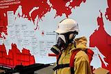 XVIII съезд Российского Красного Креста (РКК) на ВДНХ. Выставка на съезде. Форма сотрудника РКК и спецсредства на выставке.