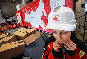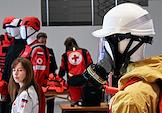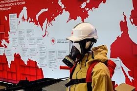 XVIII съезд Российского Красного Креста (РКК) на ВДНХ. Выставка на съезде. Предметы экипировки сотрудников РКК на выставке.