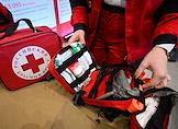 XVIII съезд Российского Красного Креста (РКК) на ВДНХ. Выставка на съезде. Аптечка сотрудника РКК на выставке.