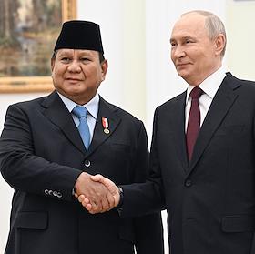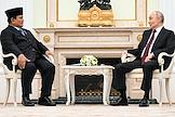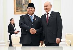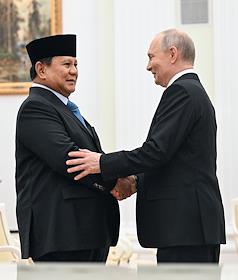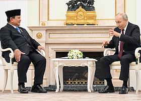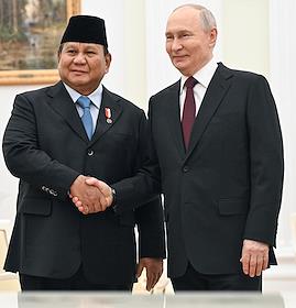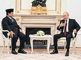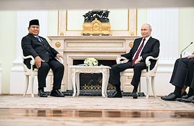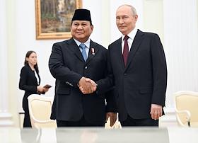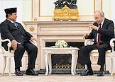 Президент России Владимир Путин (справа) и президент Индонезии Прабово Субианто (слева) во время встречи в Кремле.