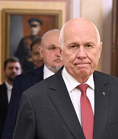 Встреча президента России Владимира Путина и президента Индонезии Прабово Субианто в Кремле. Генеральный директор Государственной корпорации по содействию разработке, производству и экспорту высокотехнологичной промышленной продукции "Ростех" Сергей Чемезов перед началом встречи.