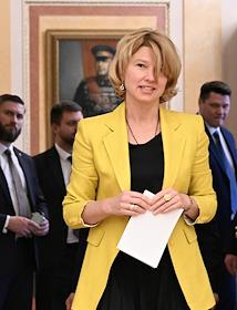 Встреча президента России Владимира Путина и президента Индонезии Прабово Субианто в Кремле. Министр сельского хозяйства России Оксана Лут перед началом встречи.