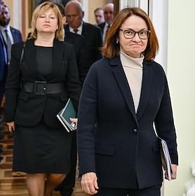 Встреча президента России Владимира Путина и президента Индонезии Прабово Субианто в Кремле. Председатель Центрального Банка России Эльвира Набиуллина (справа) перед началом встречи.