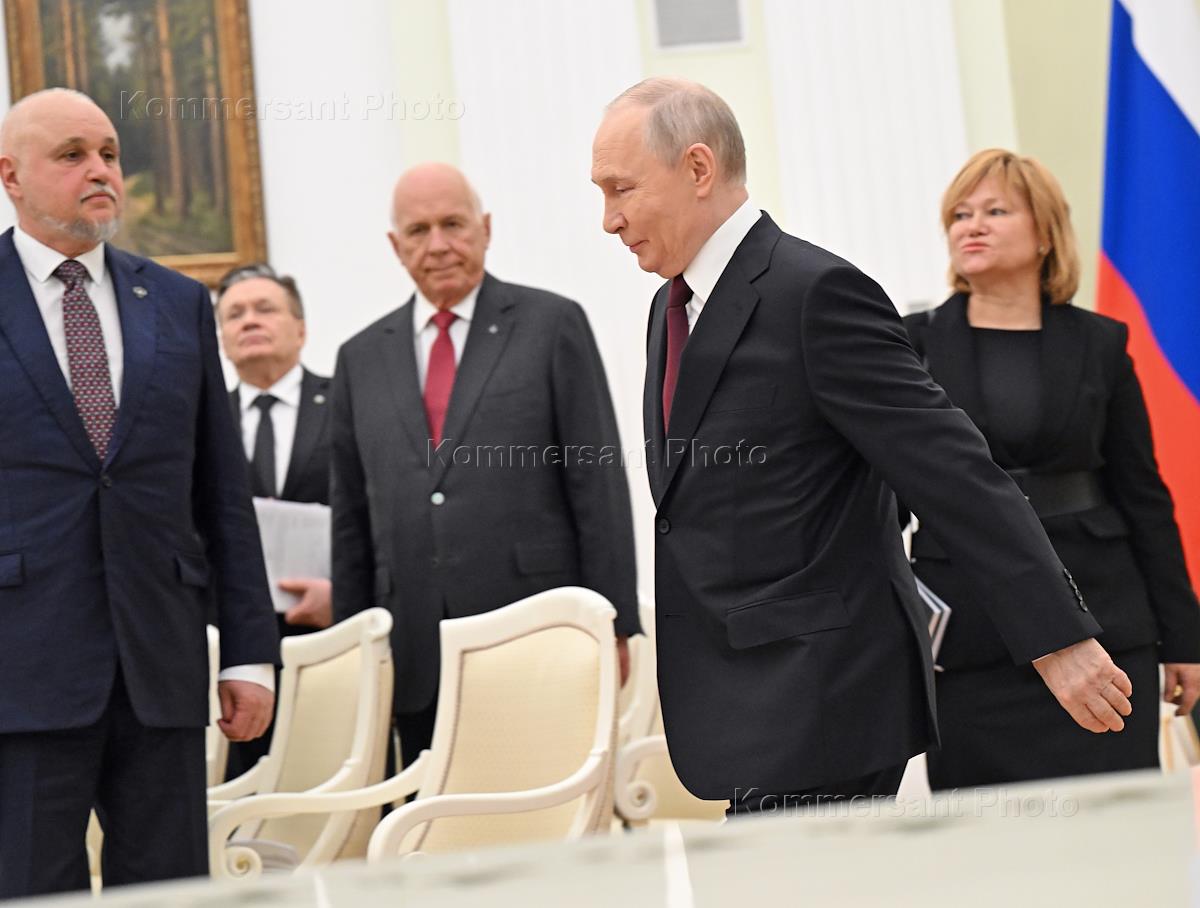 Встреча президента России Владимира Путина и президента Индонезии Прабово Субианто в Кремле. Президент России Владимир Путин (в центре) и министр энергетики России Сергей Цивилев (справа) перед началом встречи.