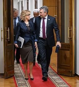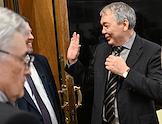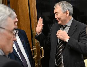 Пленарное заседание Государственной думы (ГД) России. Председатель Либерально-демократической партии России (ЛДПР), руководитель фракции ЛДПР в ГД России Леонид Слуцкий (справа) перед началом заседания.
