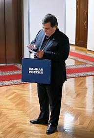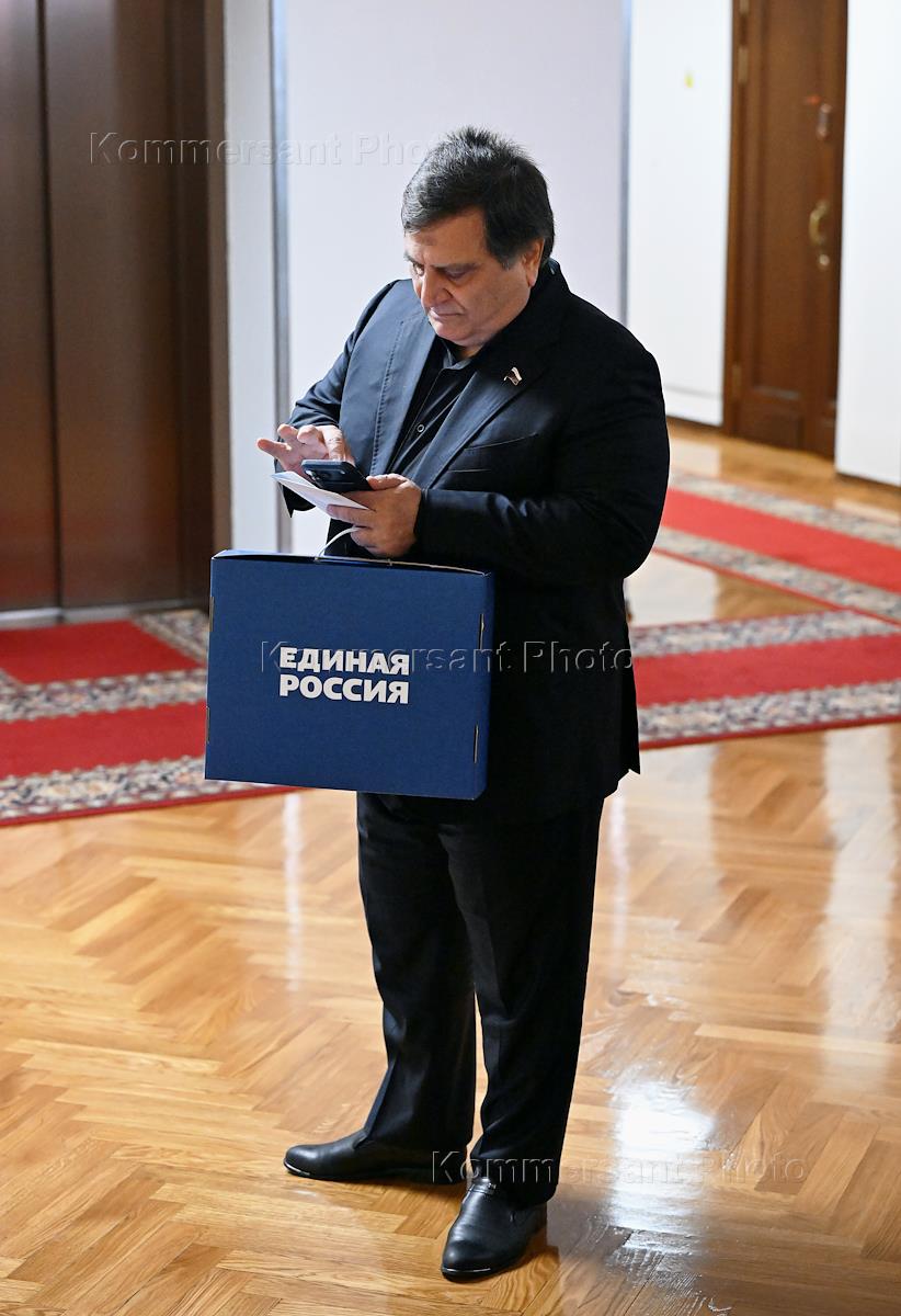 Пленарное заседание Государственной думы (ГД) России. Председатель комитета ГД России по безопасности и противодействию коррупции Василий Пискарев перед началом заседания.