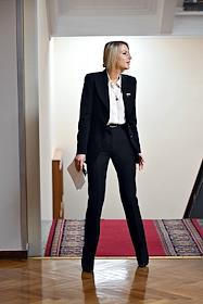 Пленарное заседание Государственной думы (ГД) России. Заместитель министра обороны России, председатель фонда "Защитники Отечества" Анна Цивилева после заседания.