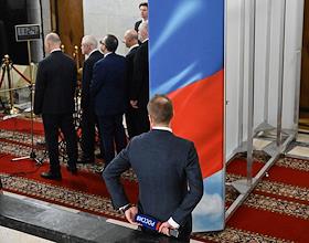 Пленарное заседание Государственной думы (ГД) России. Журналисты в здании ГД России перед началом заседания.