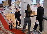 Пленарное заседание Государственной думы (ГД) России. Жанровая фотография. Интерьеры здания ГД России. Выставка, приуроченная ко Дню космонавтики.