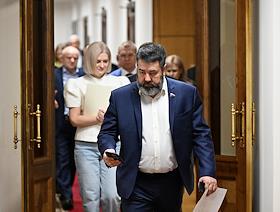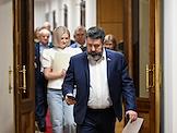 Пленарное заседание Государственной думы (ГД) России. Члены фракции "Справедливая Россия – За Правду" во время пресс-подхода перед началом заседания.